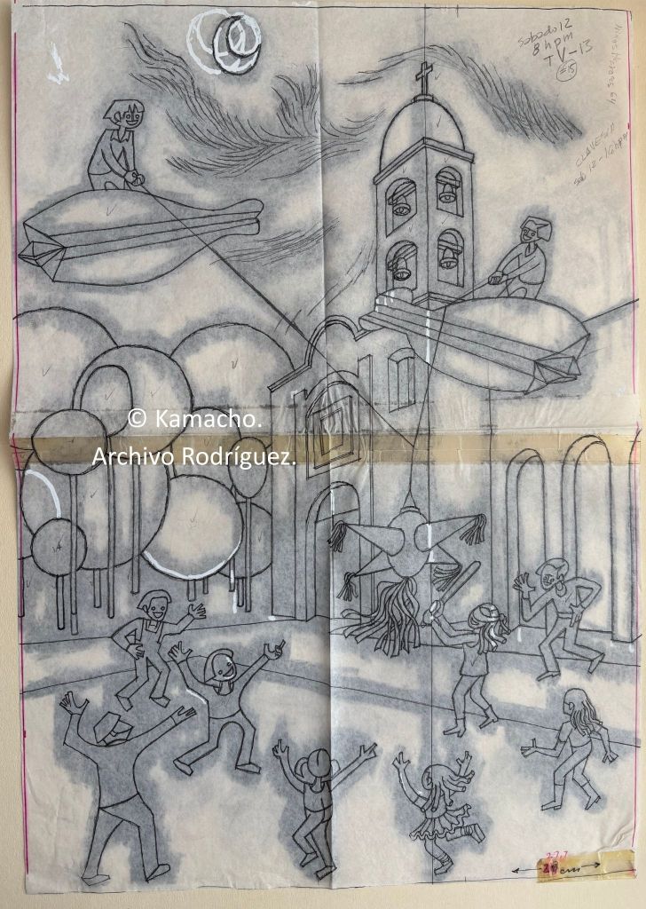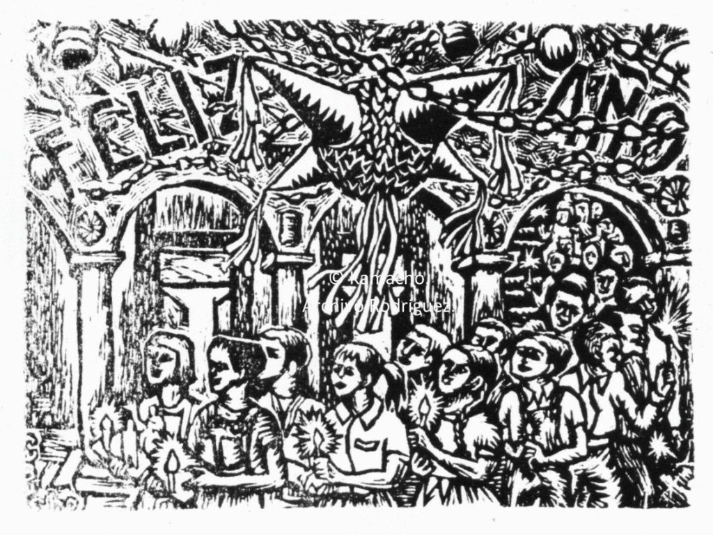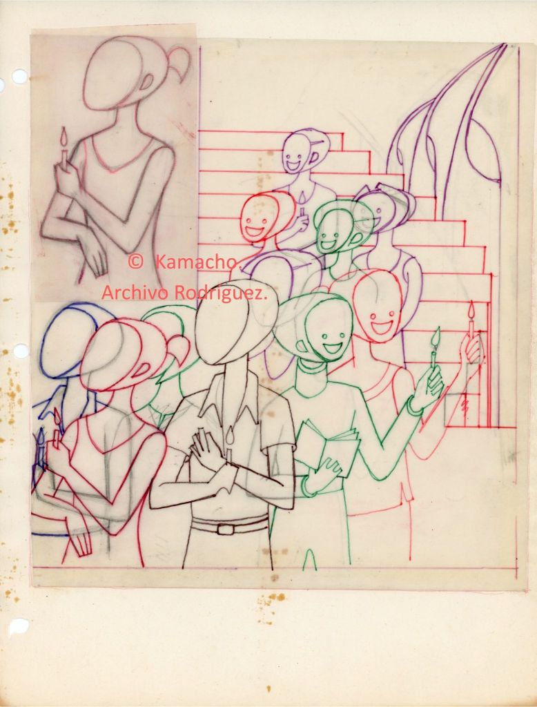Mi padre, el pintor Guillermo Rodríguez Camacho (“Kamacho”), retrató las tradiciones decembrinas en su obra. Y les imprimió su carácter único. En las siguientes imágenes se aprecia el proceso creativo de dos obras.